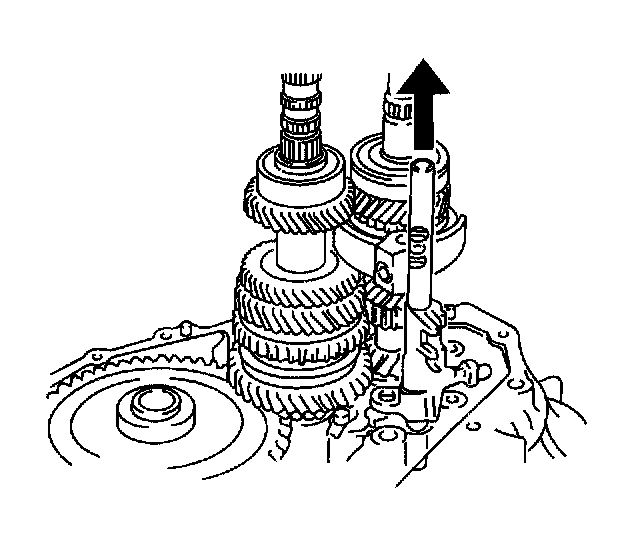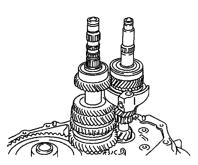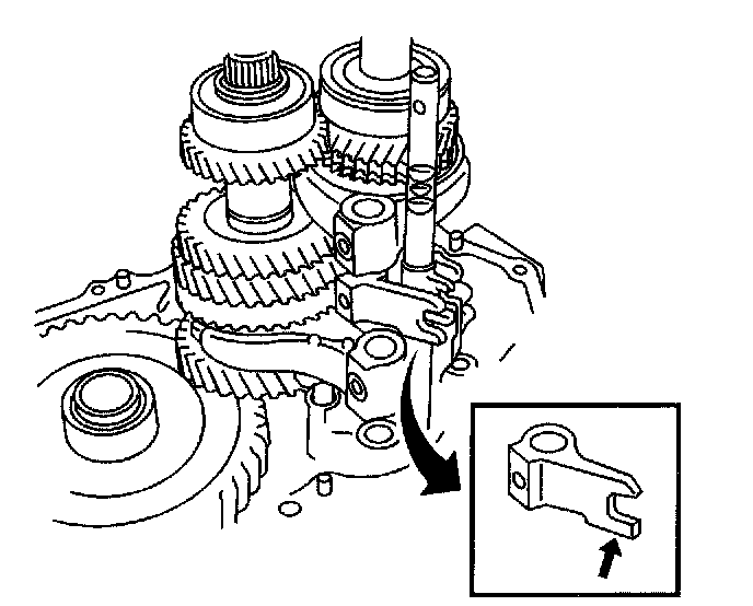 5. Using a feeler gage, measure the clearance between the hub sleeve and the gear shift fork. Maximum clearance is 0.35 mm (0.014 inch). If the clearance exceeds the maximum, replace the gear shift fork or hub sleeve.