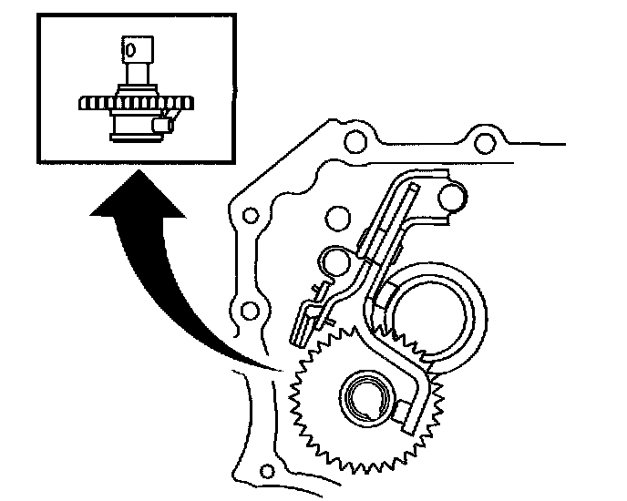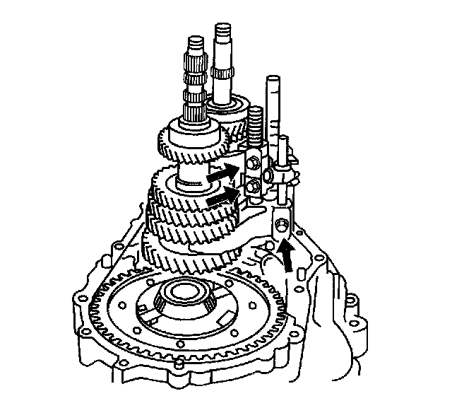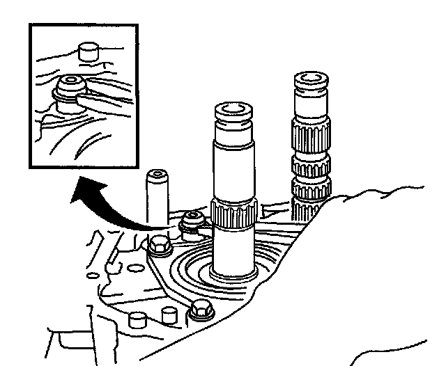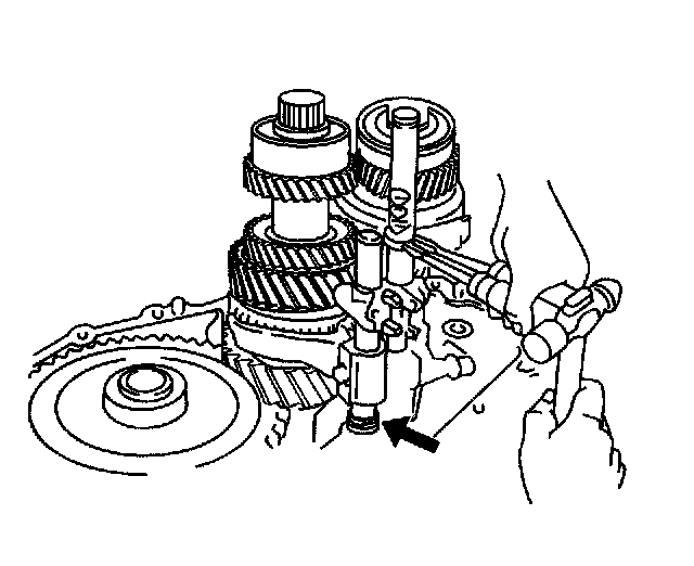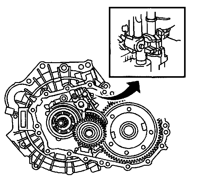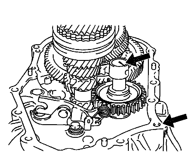68. Set the pin on the top of the reverse shift arm into the groove on the reverse idler gear.