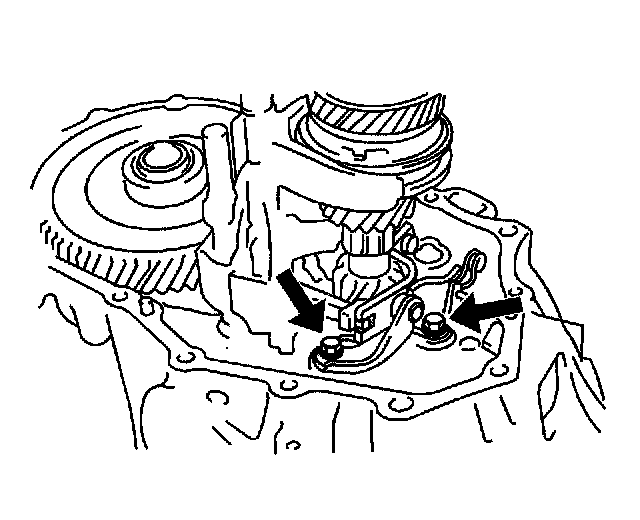 70. Install the 2 reverse shift arm bracket, then install the bracket retaining bolts.