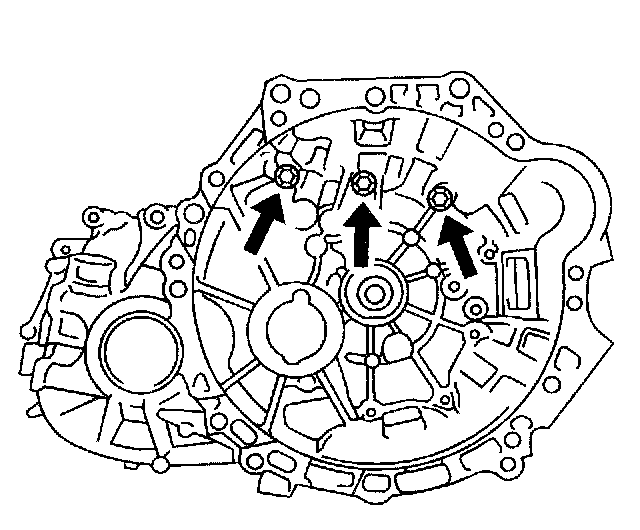 75. Install the 3 transmission case retaining bolts.