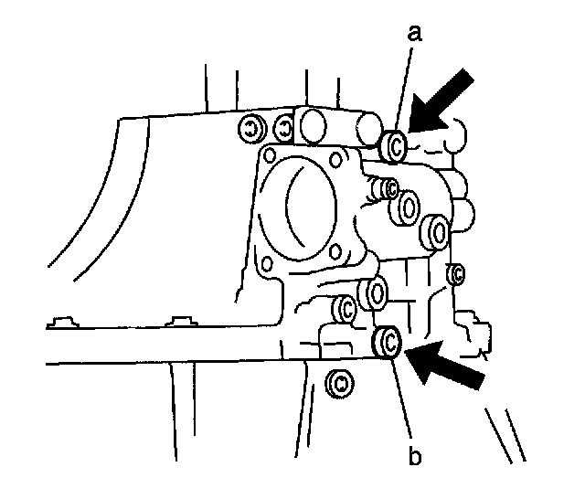 ^ Tighten screw plug (b) to 39 Nm (29 ft. lbs.).
