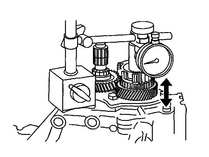 94. Using a dial indicator, measure the thrust clearance of 5th gear.