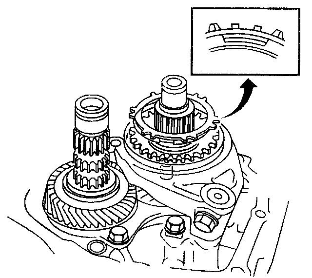108. Using a dial indicator, measure the thrust clearance of 6th gear.