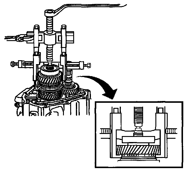 100. Install the 6th drive gear, then the rear bearing to the input shaft.