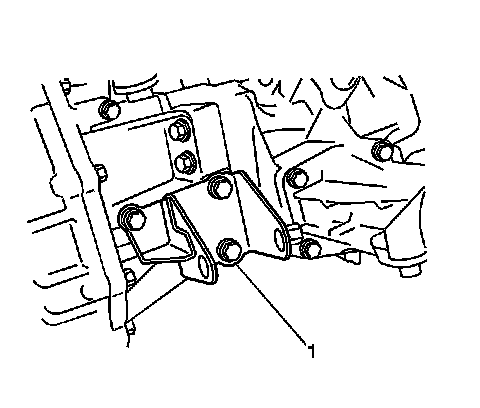 7. Install the left rear engine mount bracket (1) to the engine block.