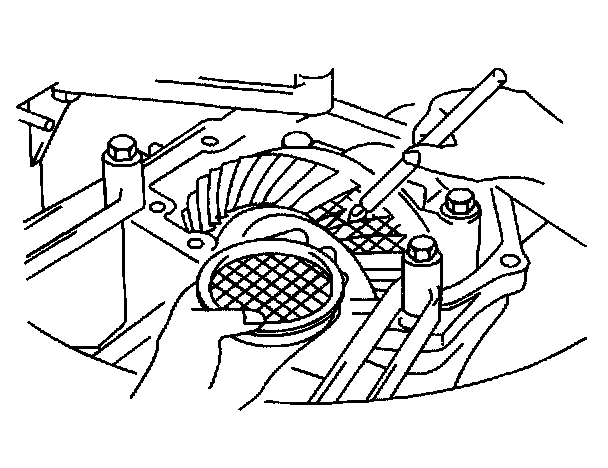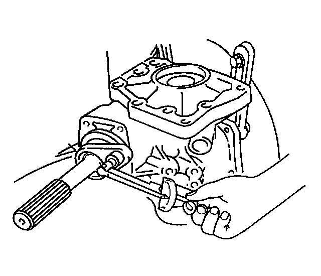 30. Using a brass bar and a hammer, remove the drive pinion bearing race from the transfer case.