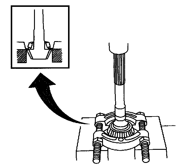 29. Using a press, remove the drive pinion bearing from the drive pinion.
