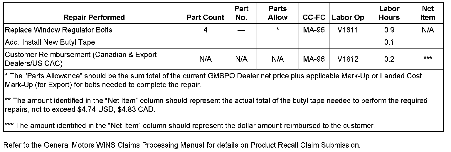 (For GM US Only) Refer to the GM Service Policies and Procedures Manual, section 6.1.12, for specific procedures regarding customer reimbursement and the form.