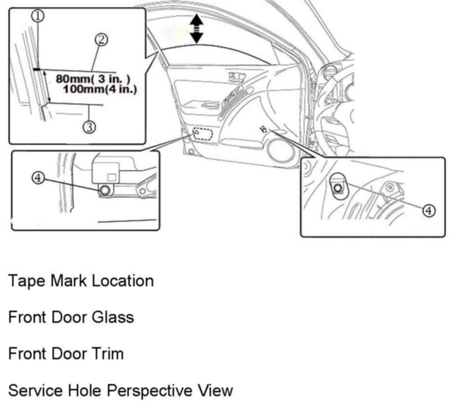 3. Adjust the front door window glass to align with the tape marking.