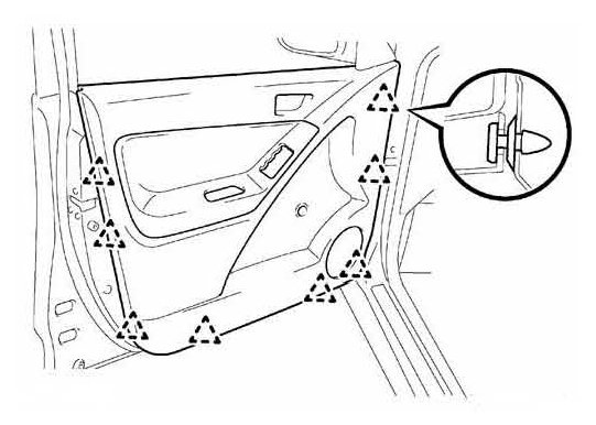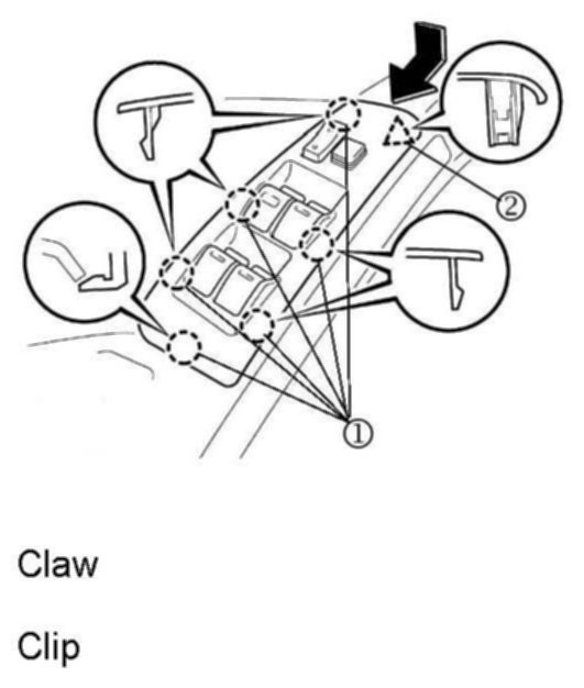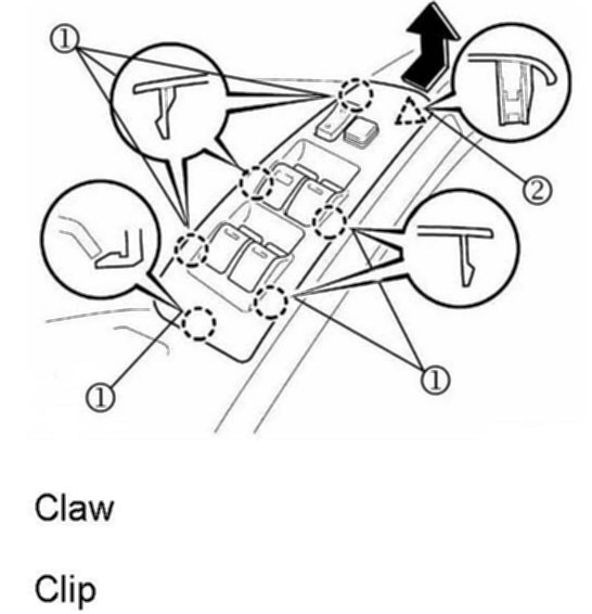 25. Reinstall the power window switch with the six (6) clips and claws.