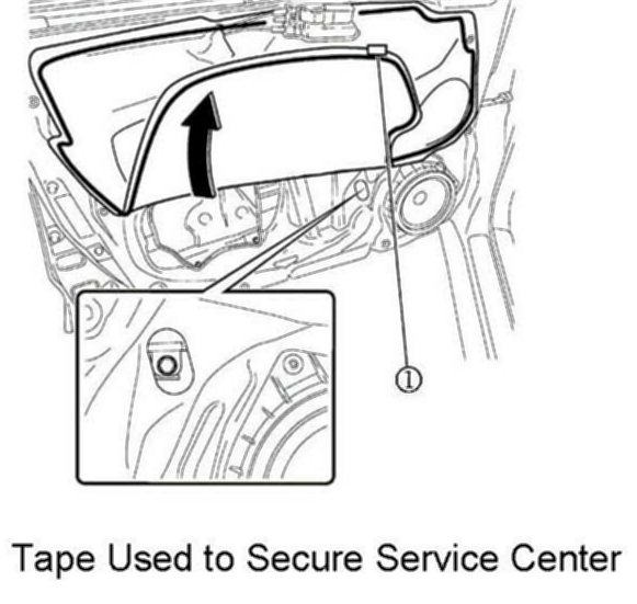 11. Pull up on the service hole cover until the bolt for the front door glass is visible and then secure the cover in place with tape.