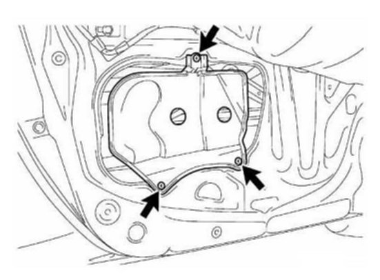 16. Reinstall the three (3) bolt screws in the front door side panel.