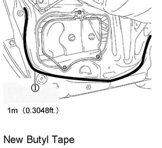 18. Without removing the butyl tape from the service hole cover place approximately 1 m (39 in) of NEW butyl tape along the door panel side.