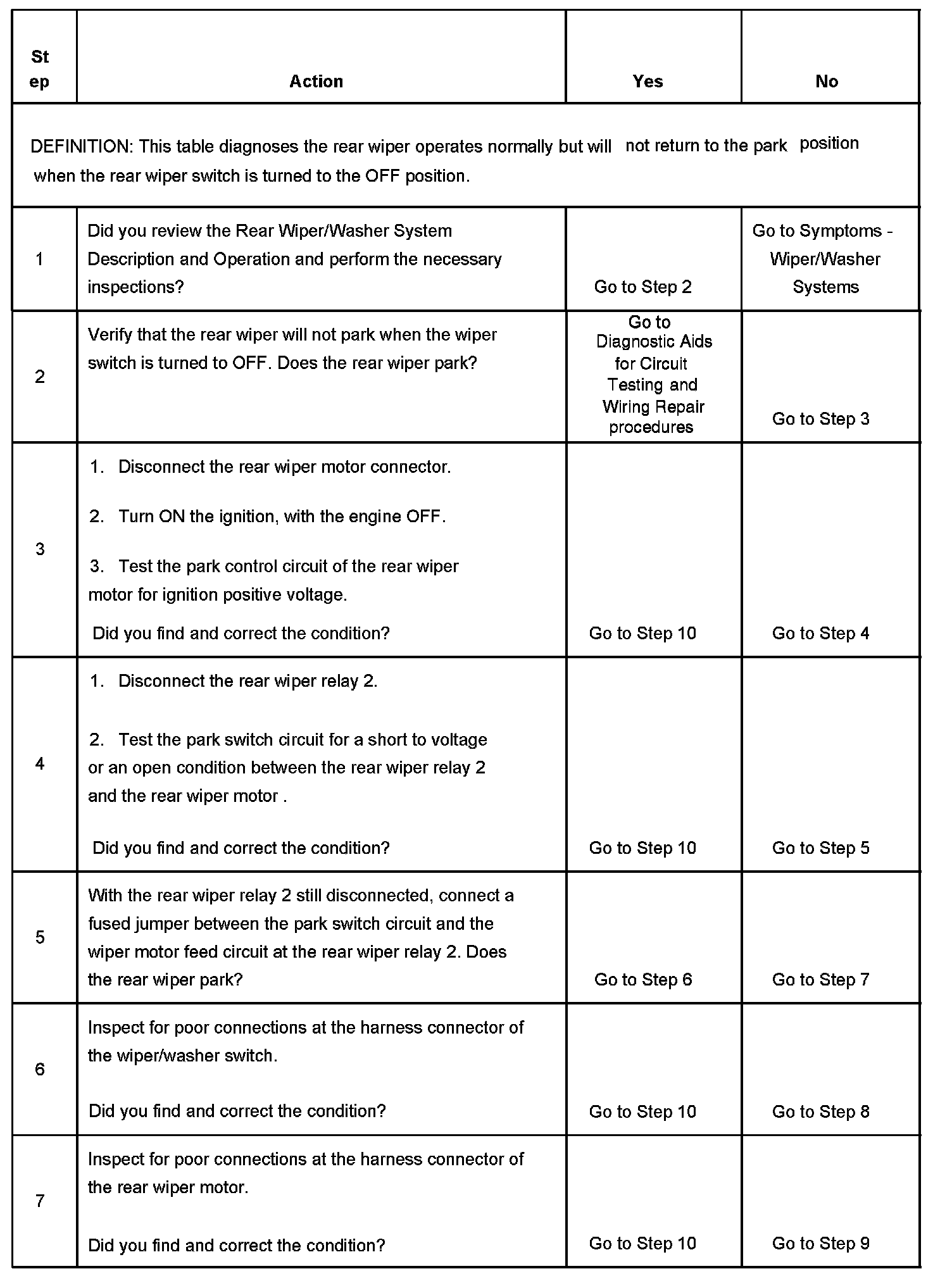 Wiper Blade Does Not Park - Rear
