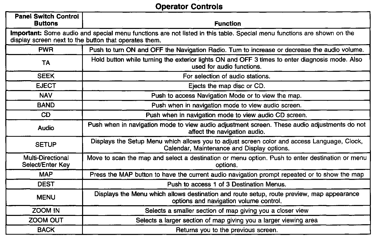 NAVIGATION SYSTEM DESCRIPTION AND OPERATIONOperator Controls:
