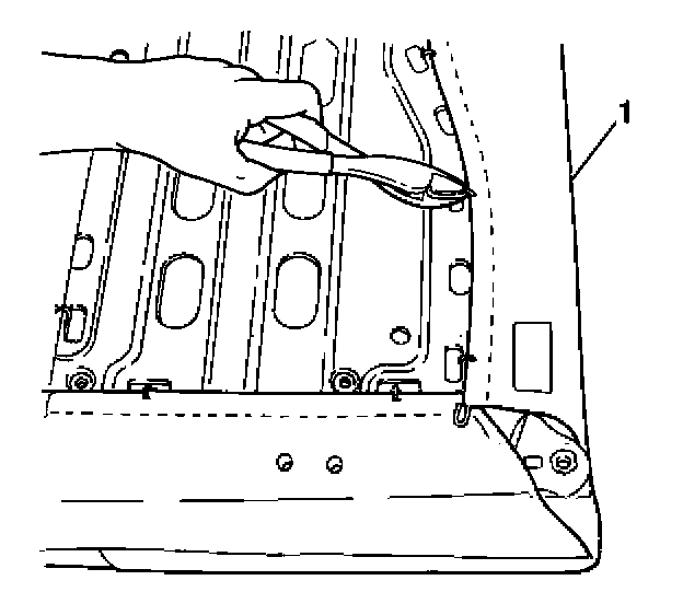 4. Cut the hog rings around the back perimeter of the rear seat back cushion (1).