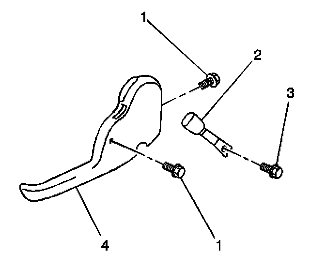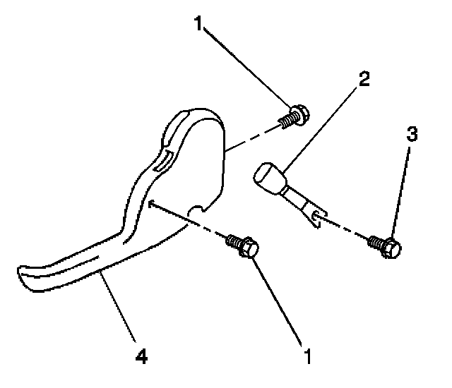 1. Install the inboard adjuster finish cover (4) to the front seat inboard adjuster. Secure the cover with the 2 screws (1).