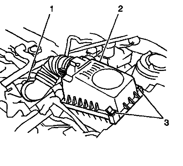 9. Remove the air cleaner hose and cap assembly (1). Disconnect the Throttle Position (TP) sensor connector.