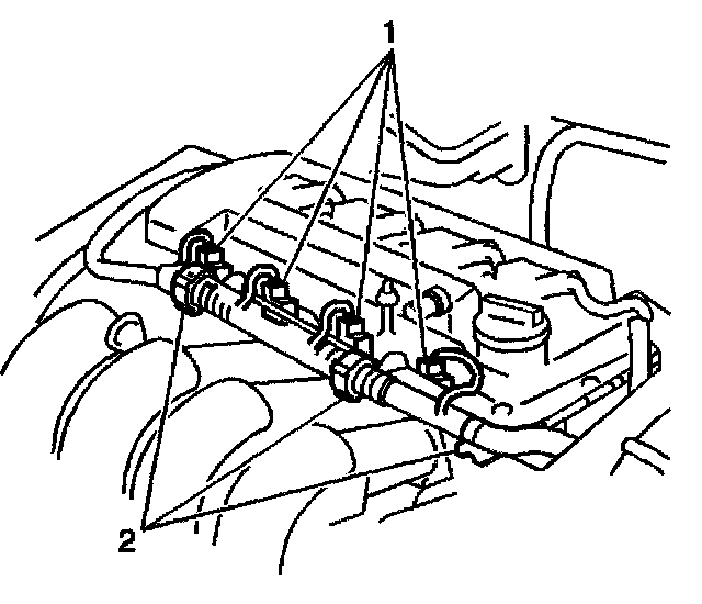 14. Disconnect the four fuel injector connectors (1).