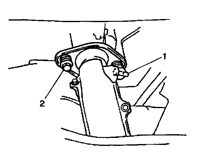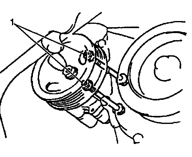 50. Remove the two power steering pump through bolts and nuts (1).