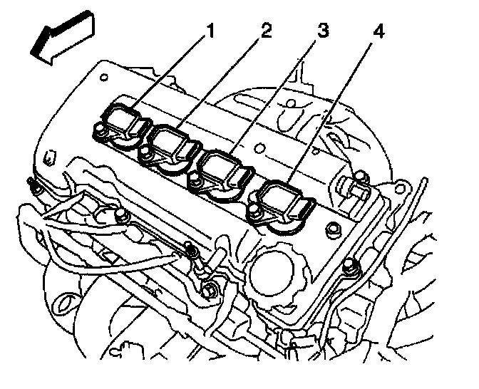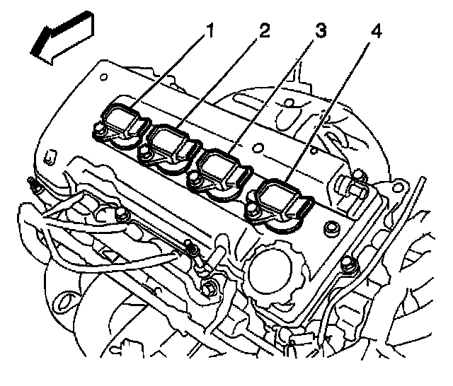 35. Remove the ignition coils (1, 2, 3, 4).
