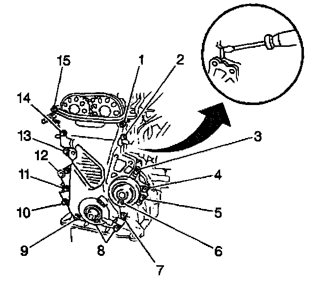 ^ The drive belt tensioner bolt