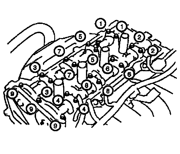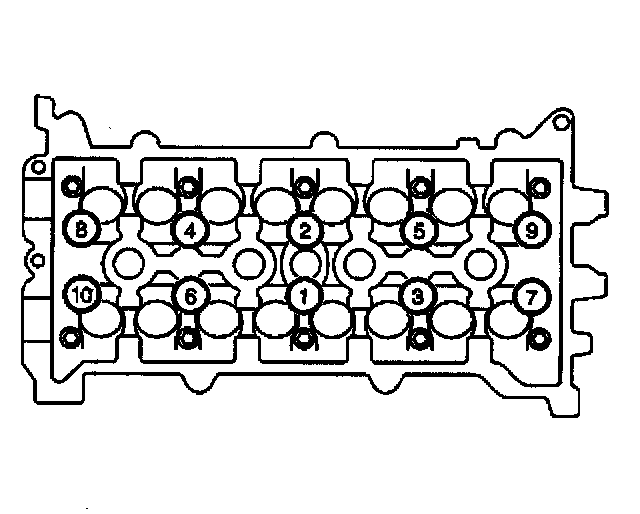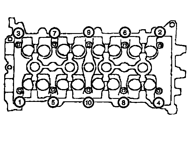 5. Progressively torque the cylinder head bolts using 3 steps in the sequence shown.