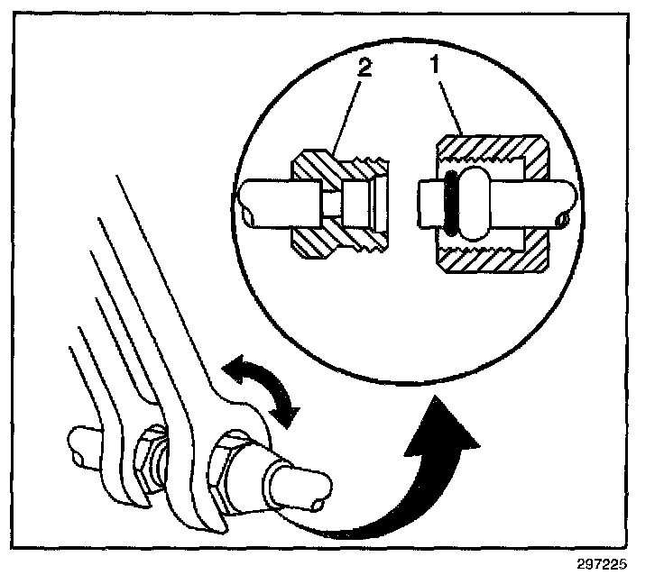 - For compression style fittings use a back up wrench on the fitting (2) and tighten the fitting nut (1) to specification.