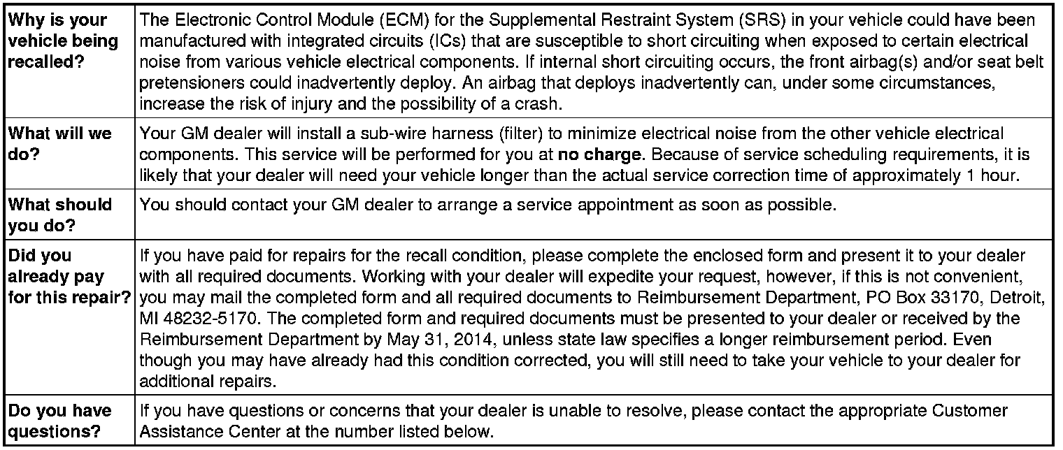 Dear General Motors Customer: