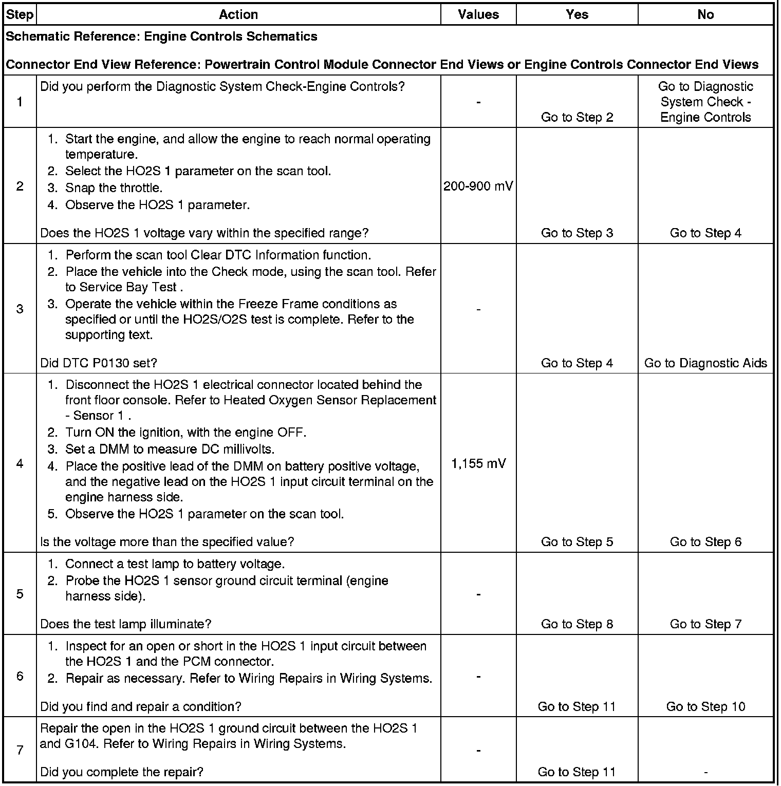 If a DTC P0130 is intermittent, driving the vehicle under the conditions outlined in the Inspection/Maintenance (I/M) section can verify whether the fault is present. Refer to Inspection/Maintenance Heated Oxygen Sensor/Oxygen Sensor System Set (Monitors, Trips, Drive Cycles and Readiness Codes).