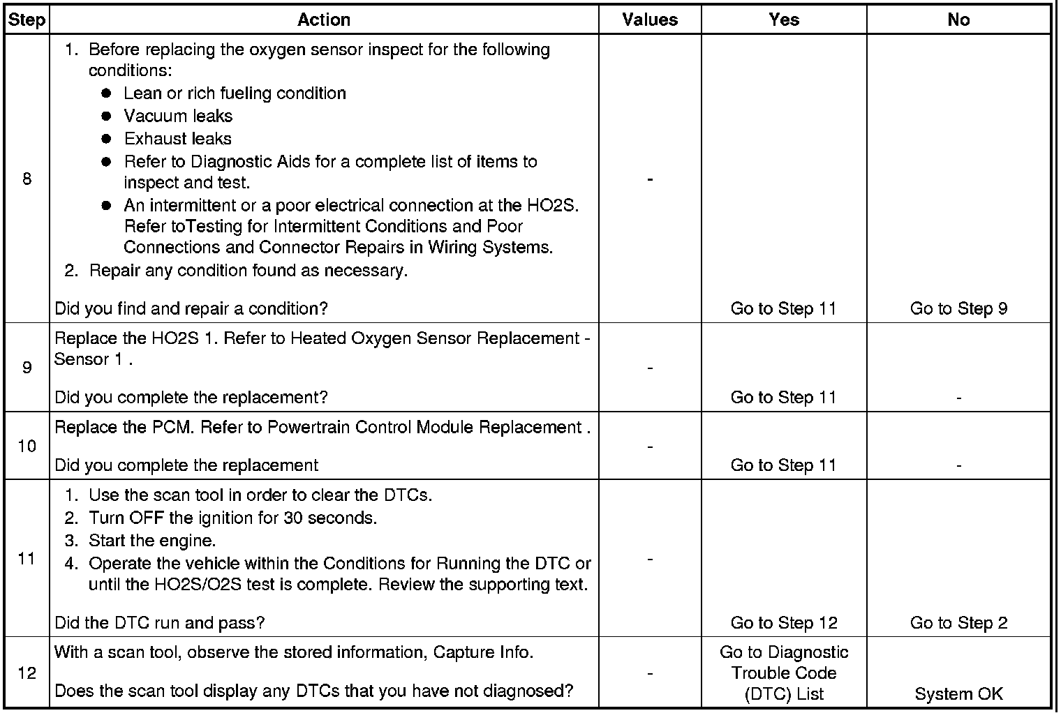 8. A condition that affects the fuel mixture or combustion event in the engine can impact the operation of the HO2S. This can cause an accurate signal from the HO2S to fail the diagnostic. Performing the tests listed in Diagnostic Aids will eliminate a faulty running condition and prevent the replacement of a good oxygen sensor.