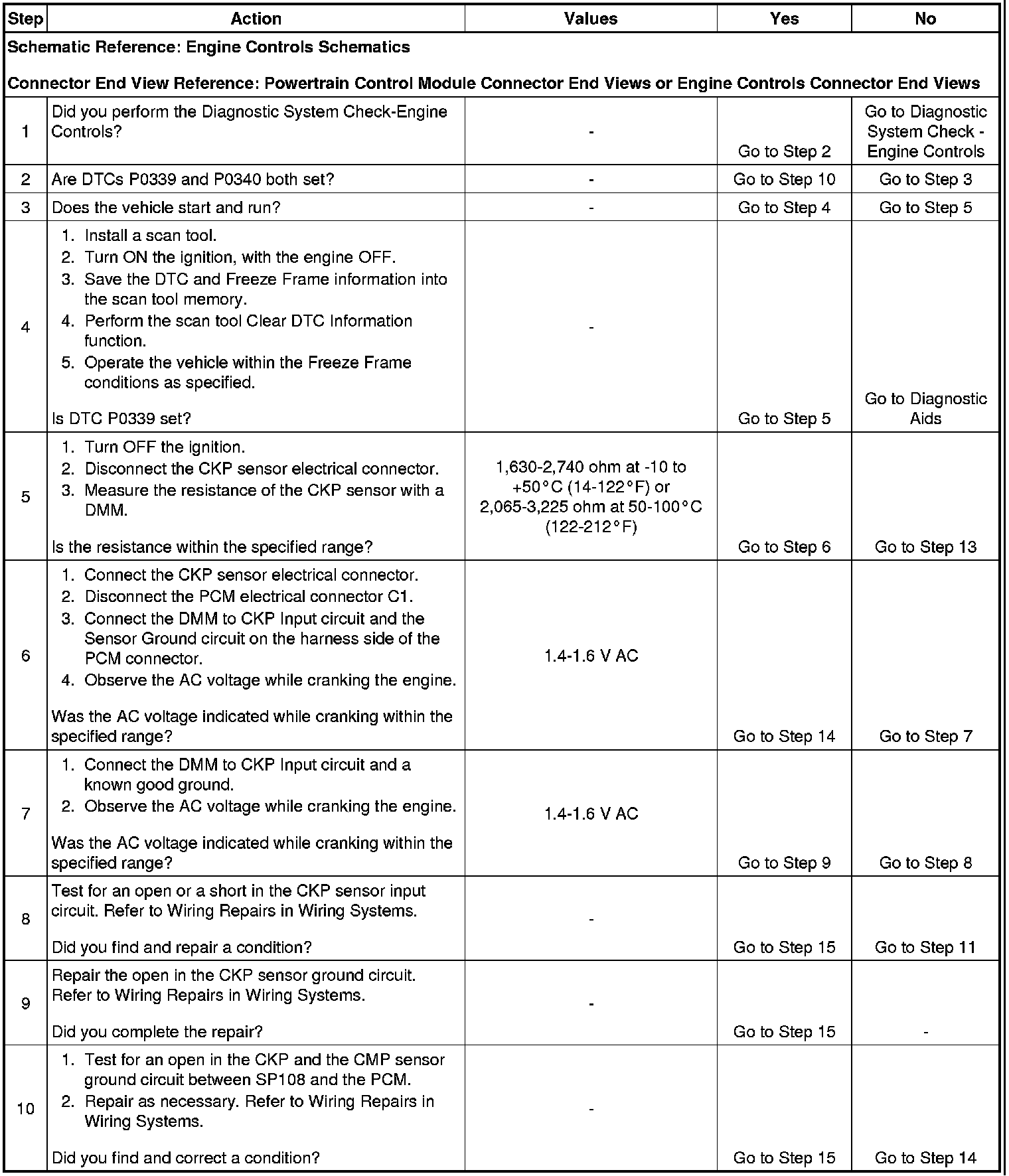 * A DTC P0339 that sets while driving and checks OK may be caused by inadequate CKP sensor circuit shielding. Check that the CKP sensor circuit is properly shielded and that the drain wire is fastened securely to ground.