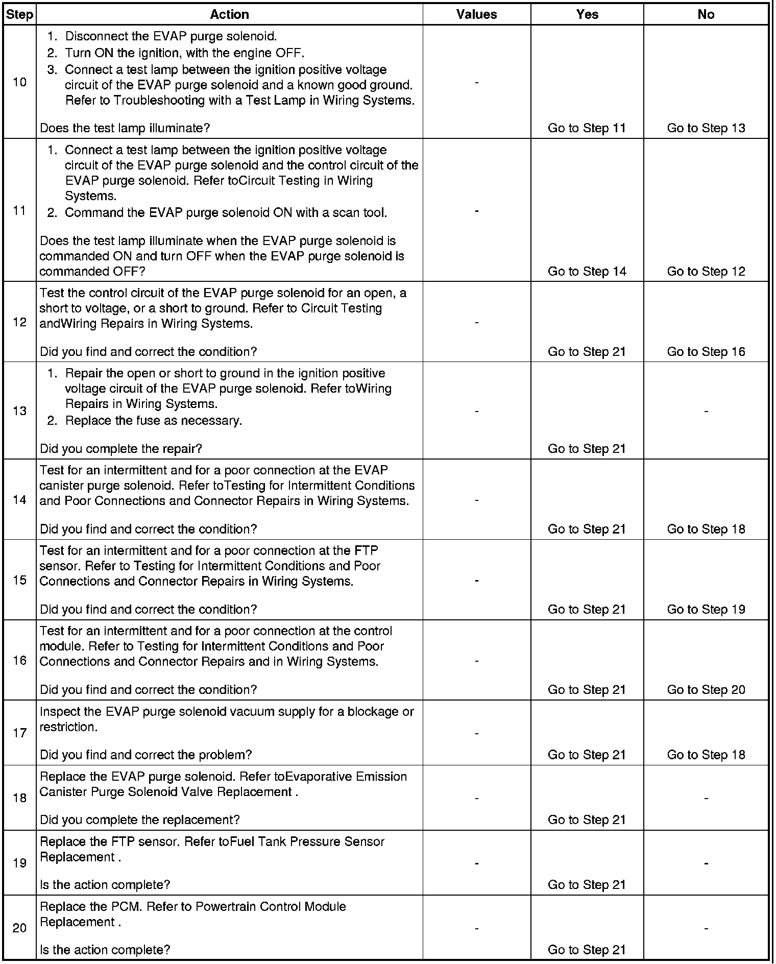 5. This step tests the function of the EVAP canister purge solenoid.