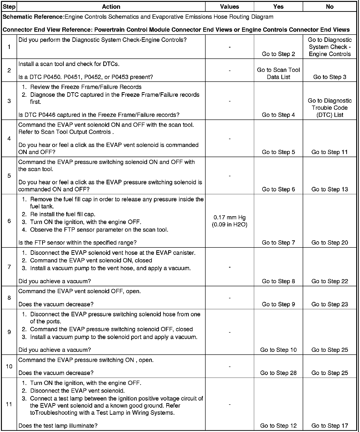 3. This step verifies that the DTC P0446 is captured in the freeze frame/failure record list. When multiple EVAP system DTCs are set, the DTC stored in the freeze frame/failure record is the best diagnostic starting point.