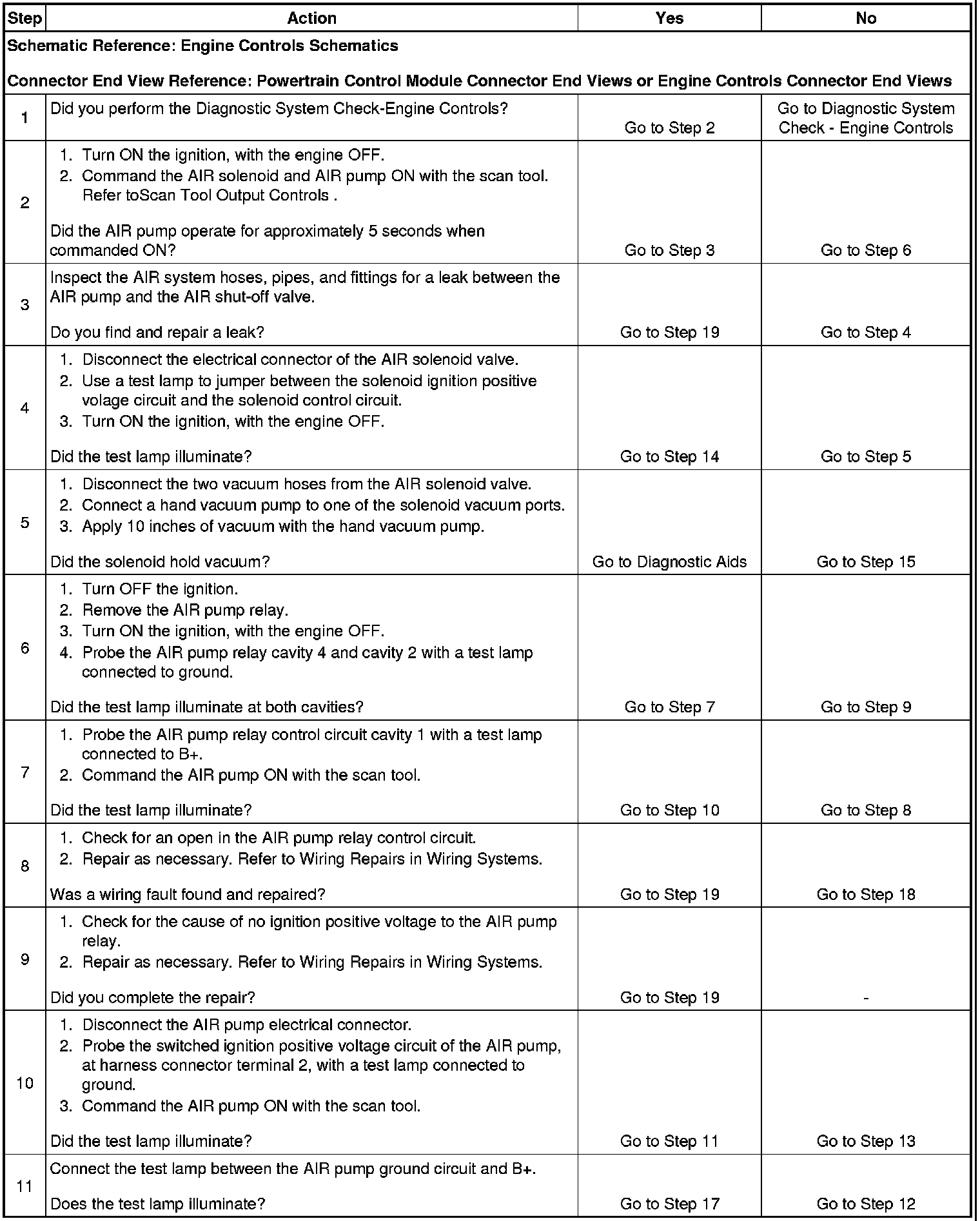 7. This step checks the control circuit of the AIR pump relay.