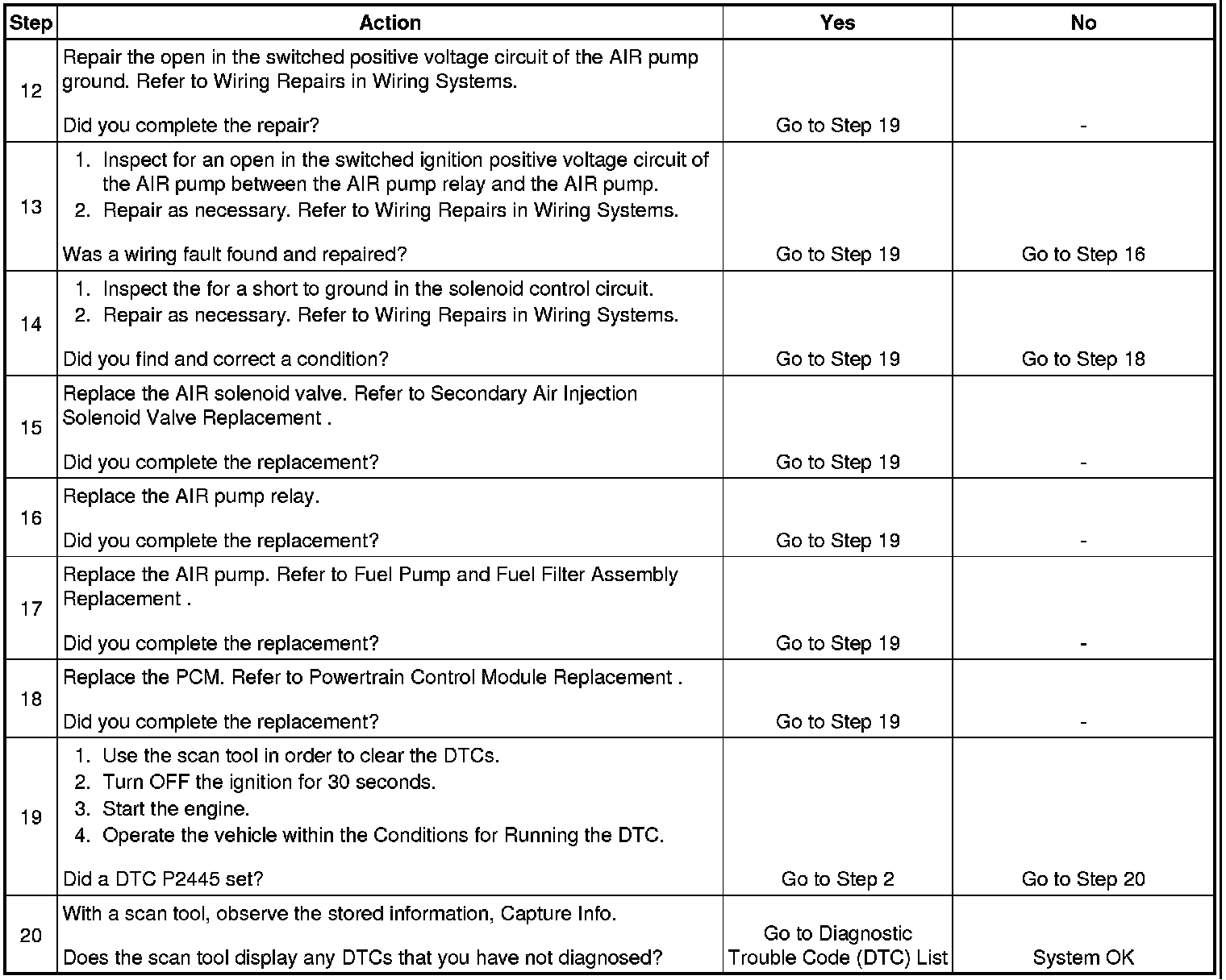4. This step checks for a pulled low solenoid control circuit. If the AIR solenoid is always ON, the pressure sensor will not detect any air flow.