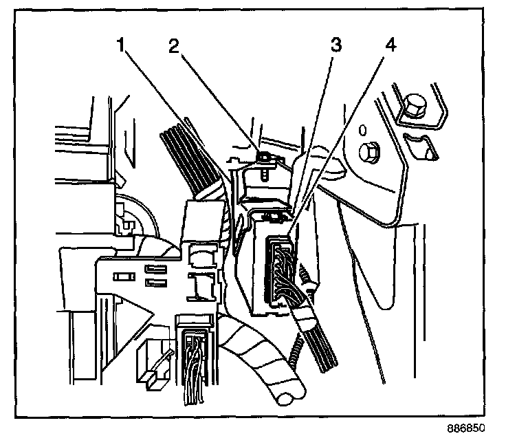 5. Remove the theft deterrent module (3) with bracket (1) from the vehicle.