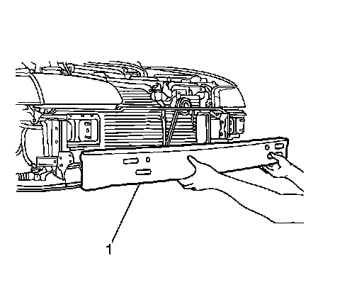 4. Remove the front bumper impact bar (1) from the front bumper impact bar outer brackets.