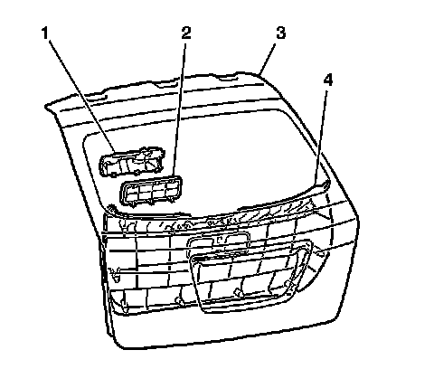 2. Install the service hole trim cover (2) to the liftgate trim panel (4).