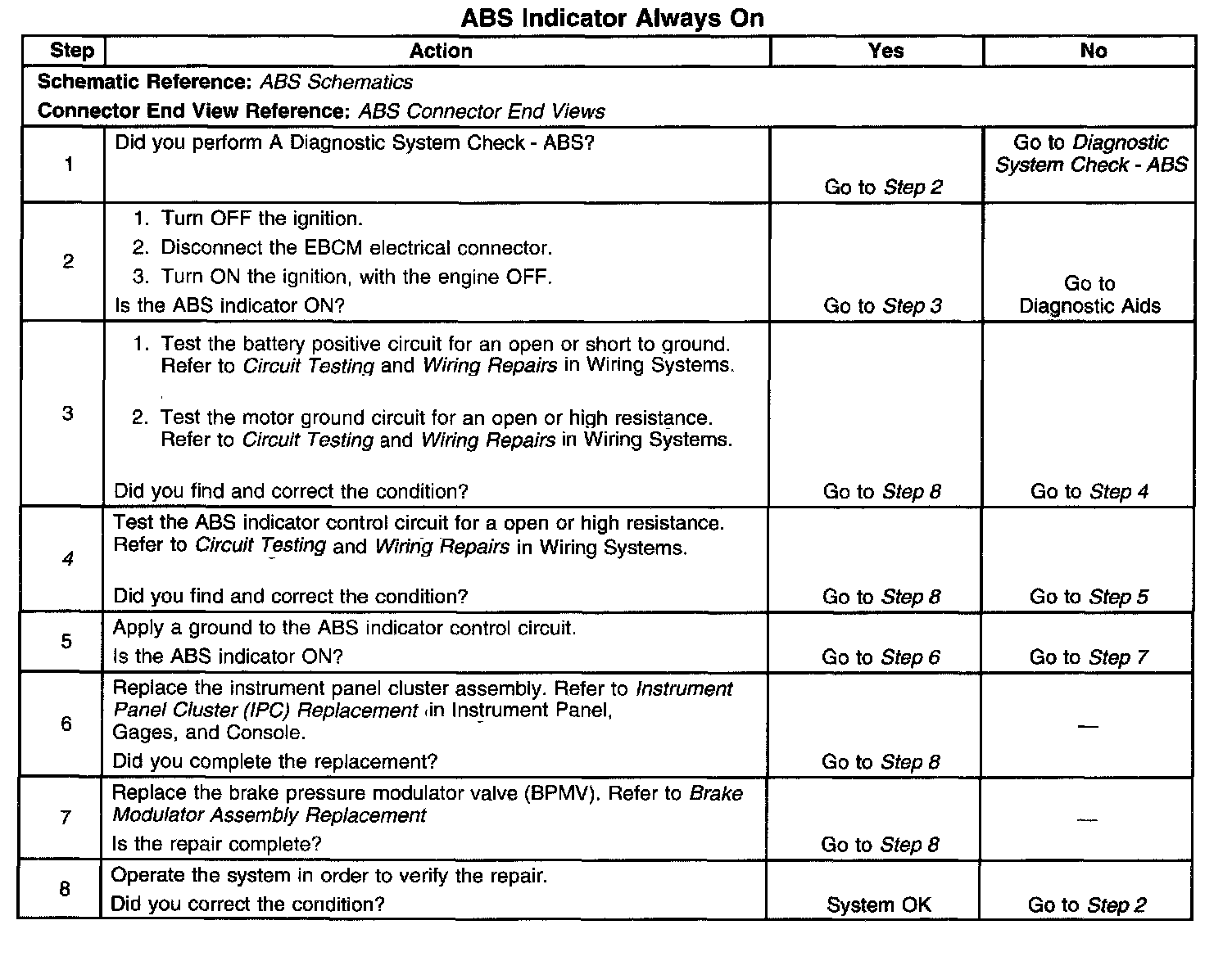 ^ An open or high resistance in the ABS indicator control circuit