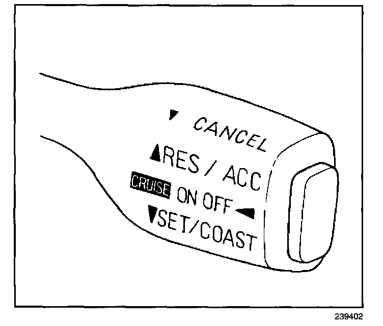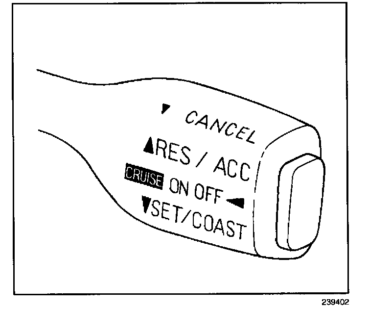 4. Move the cruise control switch downward to the SET/COAST position and release.