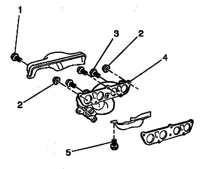 ^ The exhaust manifold (4) and gasket.