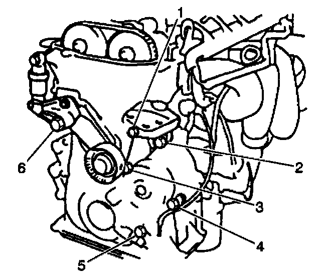 8. Install the crankshaft position sensor. Secure the sensor using 1 bolt (5).