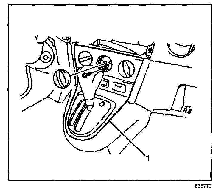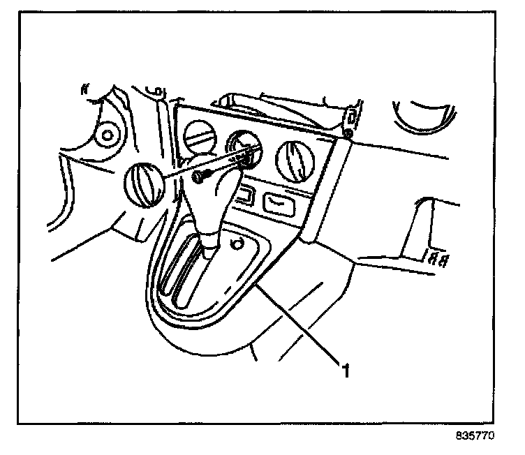 3. Install the center console and heater control trim panel (1). Secure the panel with the screw.