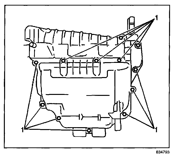 2. Install the heater core case. Secure case with the 12 bolts.
