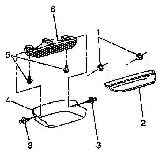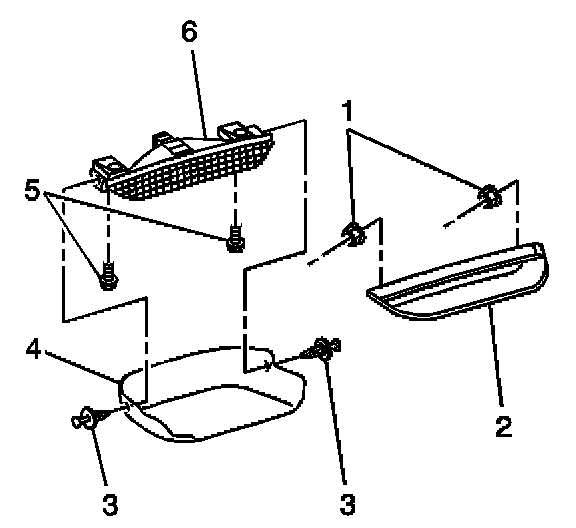 4. Remove the 2 screws (5) from the stop lamp (6).