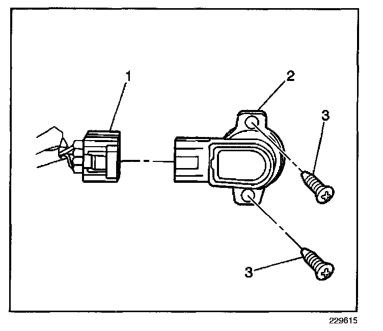 2. Remove the 2 fasteners (3) from the throttle position (TP) sensor (2).
