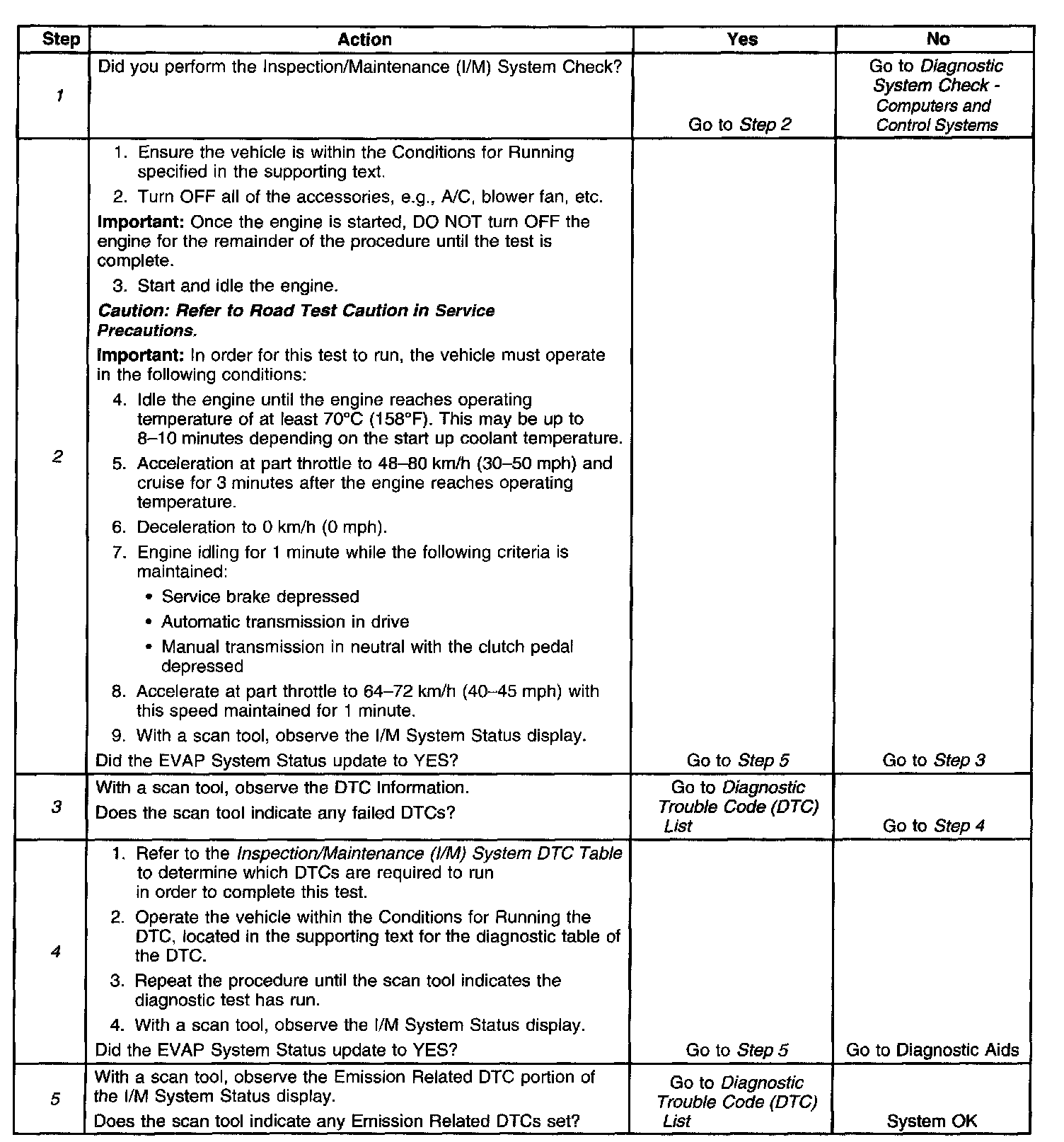 1. Make sure you perform the I/M System Check before performing this test. Failure to do so may result in difficulty updating the status to YES. Inspection/Maintenance (I/M) System Check
