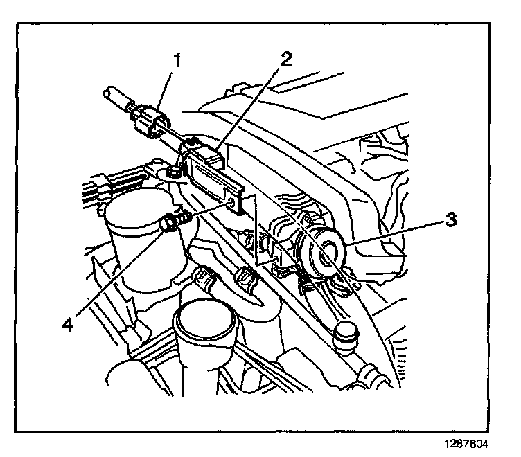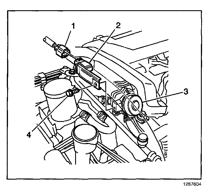 1. Install the secondary AIR pressure sensor (2) to the shut off valve (3) with the one fastener (4).