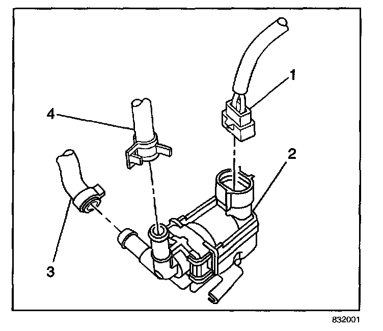 3. Connect the vacuum hose (4) to the EVAP canister purge valve (2).